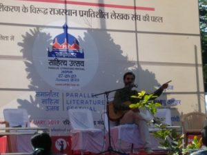 जयपुर: राजस्थान प्रगतिशील लेखक संघ द्वारा आयोजित समानांतर साहित्य महोत्सव के तीसरे दिन नागार्जुन मंच पर कई विमर्श आयोजित किये गए। एक दिलचस्प सत्र नीदरलैंड में रहने वाले राजमोहन का था। अपने एकल प्रदर्शन में उन्होंने हिंदी क्षेत्र के भोजपुरी, मैथिली, मगही, अवधी आदि भाषाओं के गीत गाकर सुनाए। बिहार के गिरमिटिया मज़दूरों की व्यथा भी सुनाई। स्टेज पर मात्र एक गिटार और बिना किसी अन्य साजो सामान के राजमोहन ने अकेले गाया। एक गीत के बोल थे " सात समंदर पार कराई के, दु तीन महीना जहाज पर , रिश्ता- नाता छूट जाए। पांच ब्रिज कमाई जे, घर लौटब जमाई के। " बीच बीच में वे दर्शकों से बातचीत करते जाते थे।