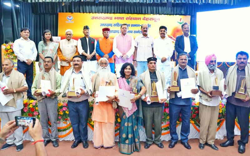 देहरादून: मुख्यमंत्री पुष्कर सिंह धामी ने उत्तराखंड भाषा संस्थान द्वारा आयोजित साहित्य गौरव सम्मान समारोह तथा लोक भाषा सम्मेलन में साहित्यकार महावीर रवांल्टा सहित 9 साहित्यकारों को उत्तराखंड गौरव सम्मान से सम्मानित किया. इस अवसर पर मुख्यमंत्री धामी ने कहा कि ऐसे आयोजनों से प्रदेश में स्थानीय भाषाओं के साथ-साथ विभिन्न क्षेत्रों में की बोलियों व उनमें रचे जा रहे साहित्य को भी प्रोत्साहन मिलेगा. देश के अनेक साहित्यकारों ने हिंदी को विश्व पटल पर स्थापित करने में महान योगदान दिया है. उन्होंने कहा कि हमारे यहां गढ़वाली, कुमाऊंनी और जौनसारी बोलियां बोली जाती हैं, परन्तु हमारे प्रदेश का हिंदी से गहरा लगाव है. उन्होंने इसे सुखद संयोग बताया कि साहित्य गौरव सम्मान पाने वाले साहित्यकारों में वे साहित्यकार भी शामिल हैं, जो अनेक विशिष्ट बोलियों में रचना कर रहे हैं.