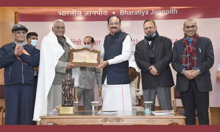 उपराष्ट्रपति ने विश्वनाथ प्रसाद तिवारी को दिया मूर्तिदेवी पुरस्कार