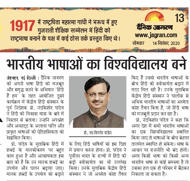 भारतीय भाषाओं का विश्वविद्यालय बने-प्रो पांडेय