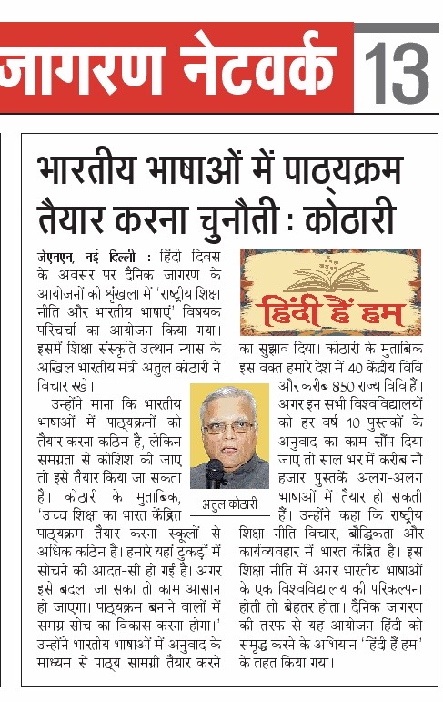 दिल्ली: हिंदी दिवस के अवसर पर दैनिक जागरण के आयोजनों की शृंखला में ‘राष्ट्रीय शिक्षा नीति और भारतीय भाषाएं’ विषय [...]