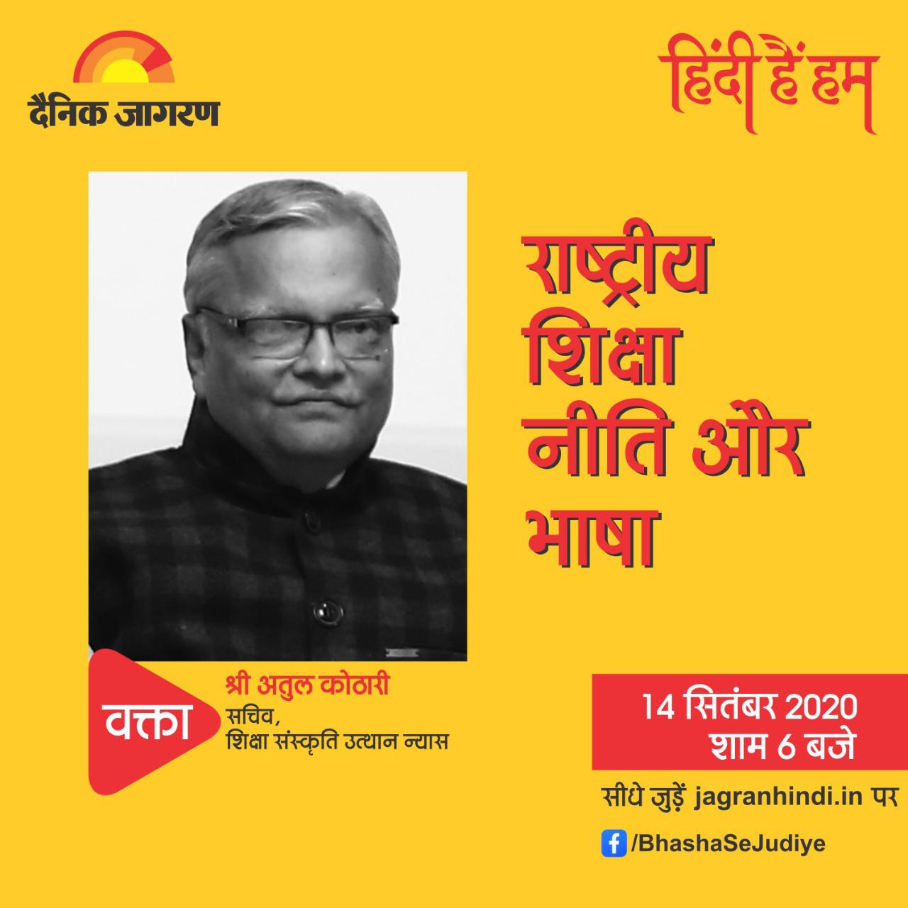 राष्ट्रीय शिक्षा नीति और भाषा दिनांक- 14.9.2020 श्री अतुल कोठारी, सचिव, शिक्षा संस्कृति उत्थान न्यास शाम 6 बजे