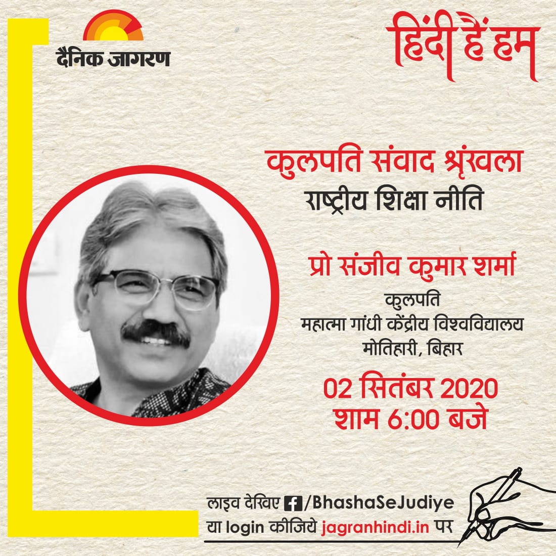 कुलपति संवाद श्रृंखला : राष्ट्रीय शिक्षा नीति में प्रो संजीव के शर्मा, कुलपति, महात्मा गांधी केंद्रीय विश्वविद्यालय, बिहार के साथ 2 सितंबर 2020, शाम 6 बजे से सीधे जुड़ें www.jagranhindi.in पर
