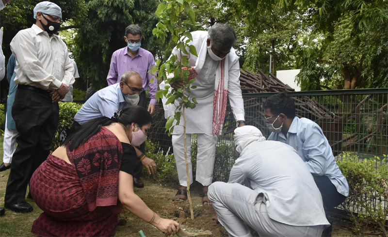साहित्य अकादमी मुख्यालय रवींद्र भवन परिसर में विश्व प्रकृति संरक्षण दिवस पर संस्कृति मंत्री ने रोपे पौधे