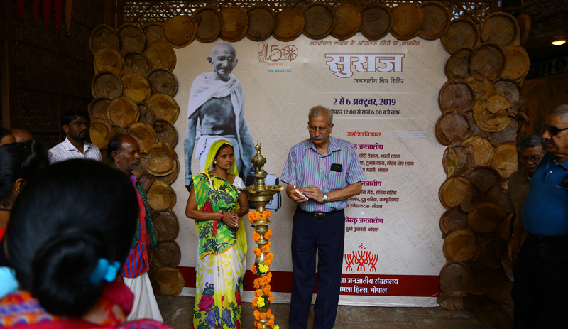 जनजातीय चित्रकारों ने कैनवास पर उकेरे स्वाधीनता के दौरान गाये जाने वाले गीत