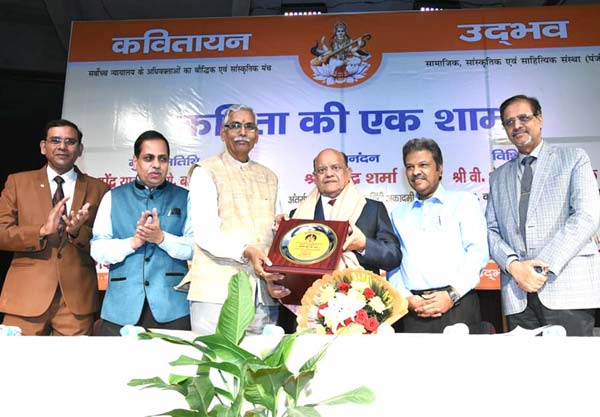 ‘कविता की एक शाम’ में हास्यकवि सुरेंद्र शर्मा का अभिनंदन