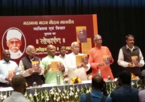 सर संघचालक मोहन भागवत ने मालवीय पर लिखी पुस्तक का किया लोकार्पण