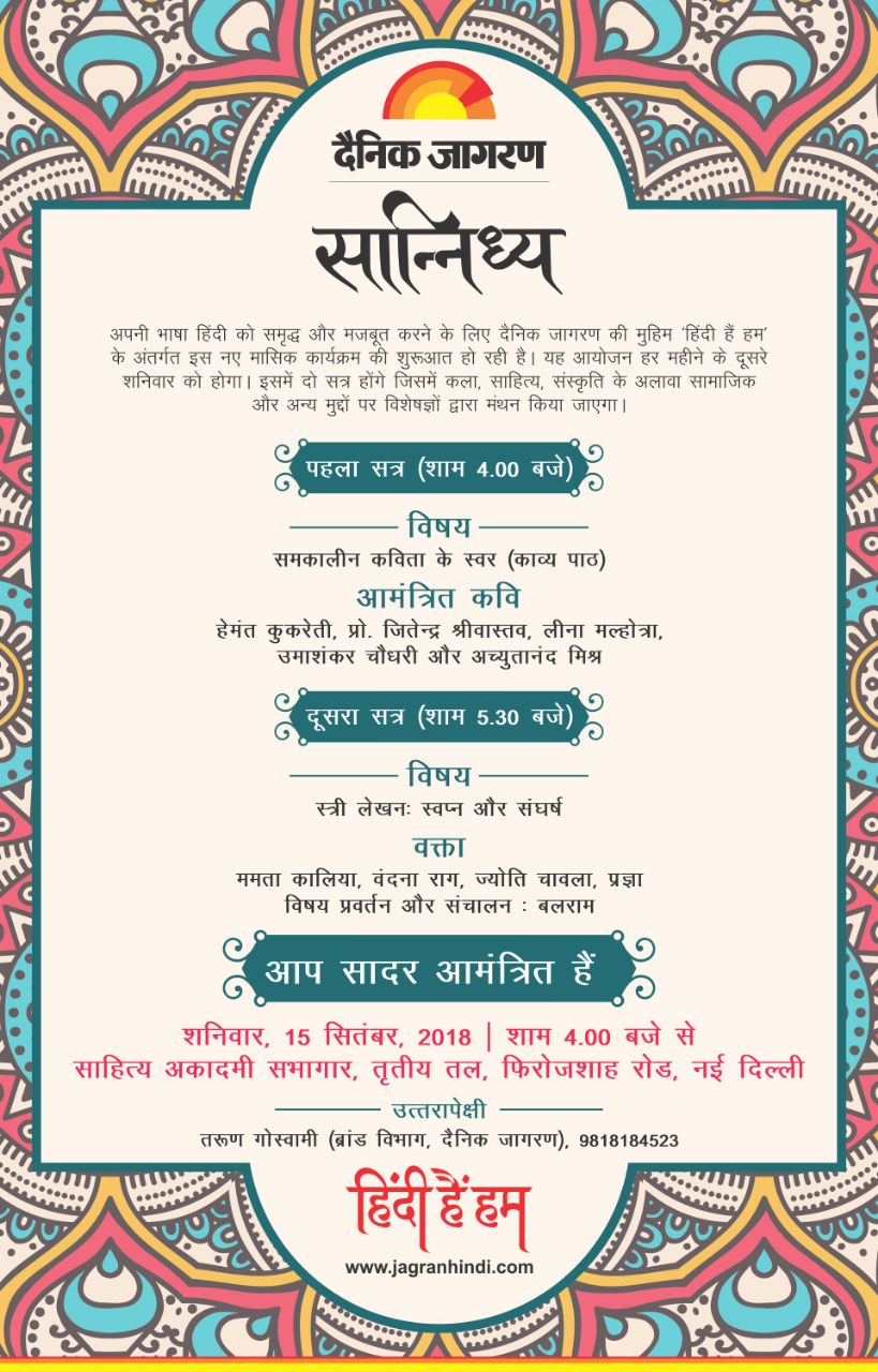 हिंदी दिवस के मौके पर दैनिक जागरण का नया कार्यक्रम- सान्निध्य
