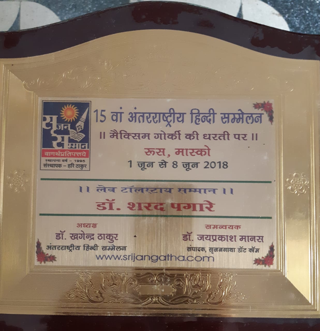 शरद पगारे को लेव टॉलस्टॉय सम्मान