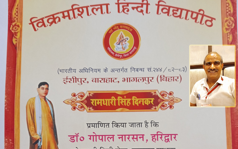 गोपाल नारसन को मिला रामधारी सिंह दिनकर हिंदी सेवा सम्मान, साहित्य-शिक्षा जगत ने दी बधाई