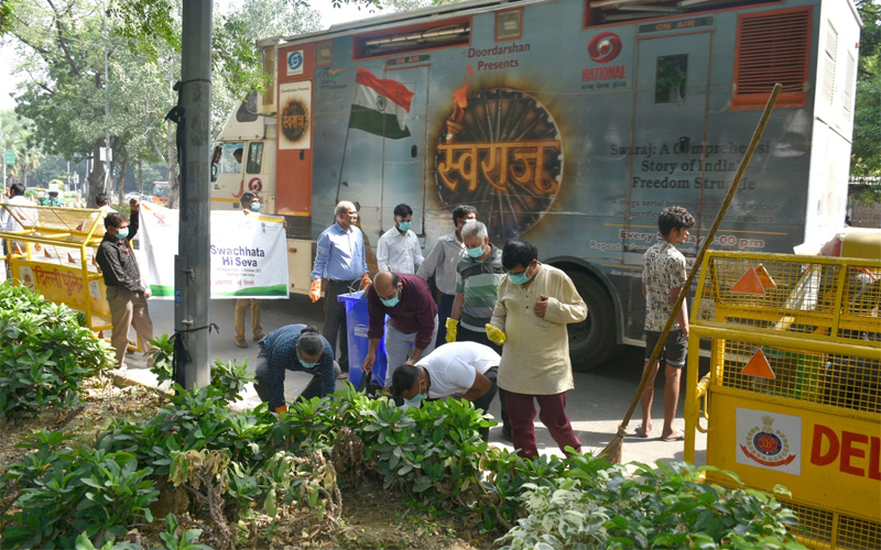 स्वच्छता ही सेवा है के तहत साहित्य अकादेमी ने मंडी हाउस गोल चक्कर और सभी क्षेत्रीय कार्यालयों की सफाई की
