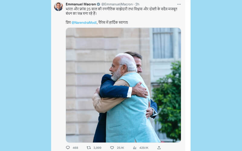 मोदी का फ्रांस दौरा, राष्ट्रपति इमैनुएल मैक्रों का देवनागरी में लिखा हिंदी ट्वीट और भारतीय भाषाओं की बात